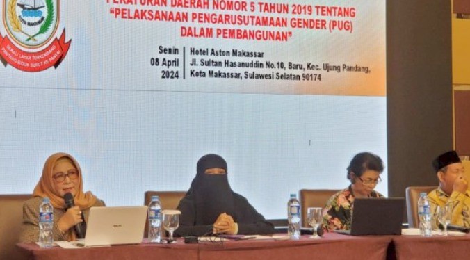 MAKASSAR - RUMAHRAKYAT.NEWS - Anggota DPRD Kota Makassar, Apiaty K Amin Syam menggelar Sosialisasi Penyebarluasan Peraturan Daerah (Perda) Nomor 5 Tahun 2019 tentang Pelaksanaan Pengarusutamaan Gender (PUG) dalam Pembangunan, di Hotel Aston, Jl Sultan Hasanuddin, Senin (8/4/2024).