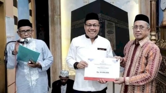 RUMAHRAKYAT.NEWS - Sekretaris Dewan (Sekwan) DPRD Kota Makassar, Dahyal menyalurkan dana hibah dari Pemerintah Kota Makassar senilai Rp50 juta di Masjid Al Amin, Jalan Lasuloro Raya, Bumi Antang Permai, Makassar, Sabtu (16/3/2024).