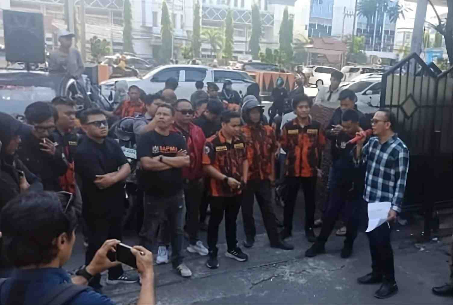 Makassar - Rumahrakyat.news - Satuan Siswa, Pelajar, dan Mahasiswa (SAPMA) Pemuda Pancasila (PP) Kota Makassar menggelar aksi unjuk rasa di depan gedung DPRD Makassar, Senin (28/7/2025). Mereka menuntut pertanggungjawaban manajemen Alfamidi atas dugaan tindakan sewenang-wenang terhadap seorang warga.