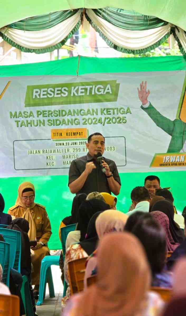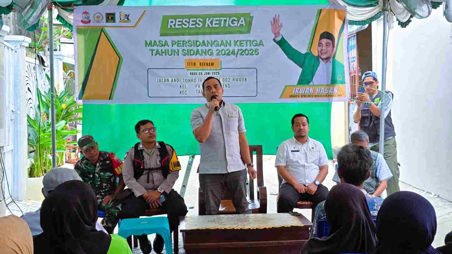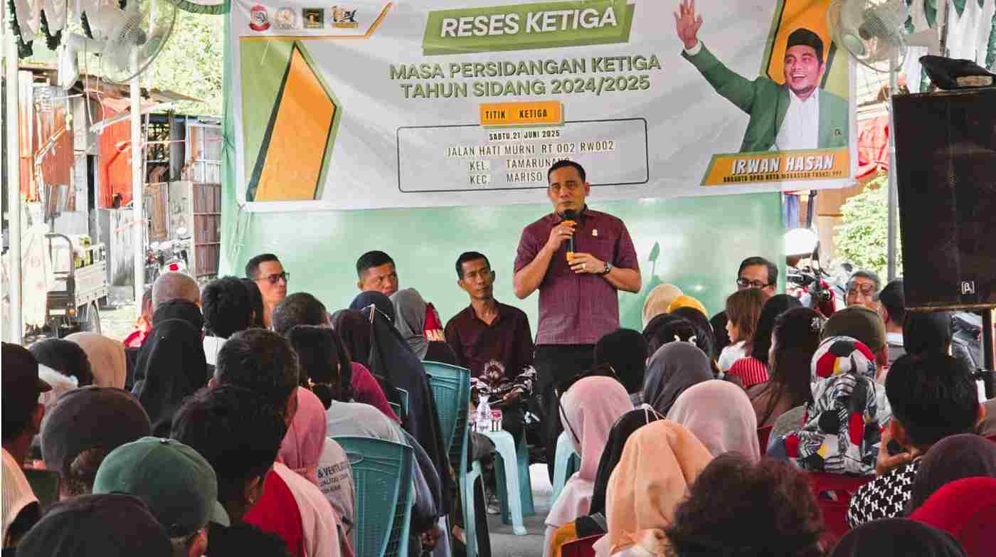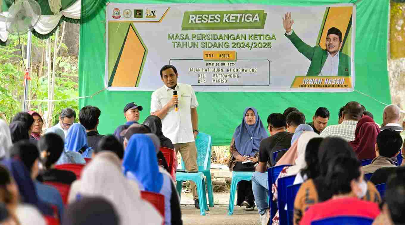 Makassar - Rumahrakyat.news - Anggota Dewan Perwakilan Rakyat Daerah (DPRD) Kota Makassar dari Fraksi Partai Persatuan Pembangunan (PPP), Irwan Hasan, gencar menyerap aspirasi masyarakat dalam rangkaian kegiatan Reses Masa Sidang Ketiga Tahun Sidang 2024/2025. Irwan Hasan mengunjungi enam titik lokasi berbeda di wilayah Kecamatan Mariso dan Tamalate selama empat hari, mulai Kamis, 19 Juni hingga Rabu, 25 Juni 2025. Intensitas ini menunjukkan komitmennya untuk berinteraksi langsung dengan konstituen dan mengidentifikasi permasalahan krusial yang dihadapi warga kota.