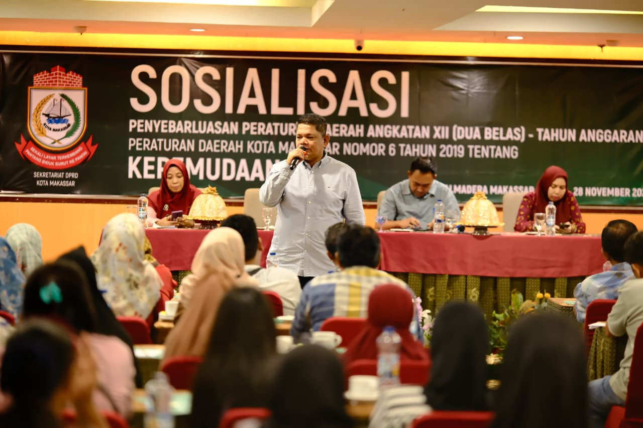 Rumahrakyat.news - Makassar - Anggota DPRD Kota Makassar, Fasruddin Rusli, SE, kembali menunjukkan komitmennya dalam memperkuat pemahaman masyarakat terkait regulasi daerah melalui kegiatan Sosialisasi Peraturan Daerah (Sosper) Angkatan XII Tahun Anggaran 2025 yang dilaksanakan bersama DPRD dan Pemerintah Kota Makassar. Pada kegiatan kali ini, tema yang diangkat adalah Peraturan Daerah Kota Makassar Nomor 6 Tahun 2019 tentang Kepemudaan, sebuah perda strategis yang menjadi dasar pembinaan, perlindungan, dan pengembangan kapasitas pemuda di Kota Makassar. Kegiatan berlangsung pada Jumat, 28 November 2025, bertempat di Hotel Almadera Makassar, Jalan Somba Opu, dan dihadiri oleh tokoh masyarakat, organisasi kepemudaan, perwakilan lembaga masyarakat, akademisi muda, serta berbagai pihak terkait. Dalam sambutannya, Fasruddin menegaskan bahwa pemuda merupakan pilar utama pembangunan daerah, sehingga pemahaman terhadap isi Perda Kepemudaan menjadi kunci dalam mewujudkan generasi yang produktif, inovatif, dan siap bersaing. Ia menyampaikan bahwa regulasi bukan sekadar dokumen hukum, tetapi pedoman untuk menciptakan ekosistem kepemudaan yang lebih baik di Kota Makassar.